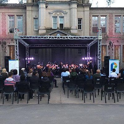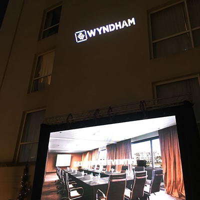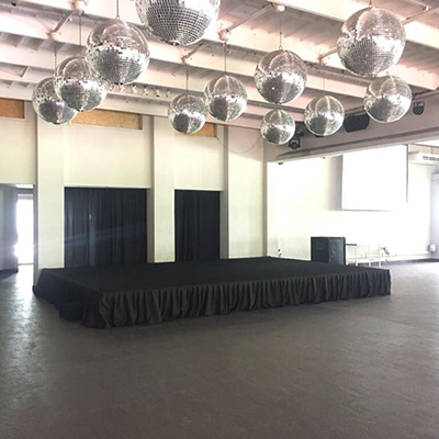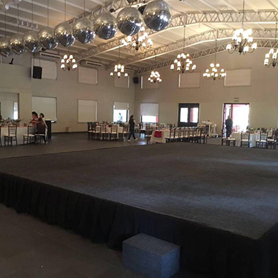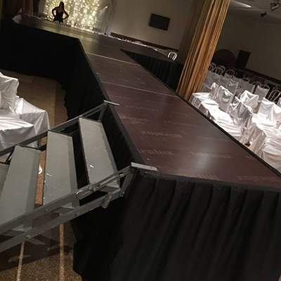 Servicio de alquiler de escenario 6x3 metros para evento corporativo en Faena Hotel.