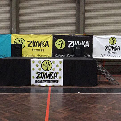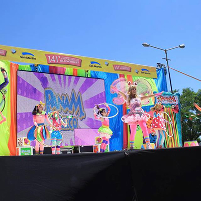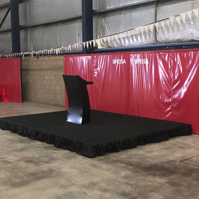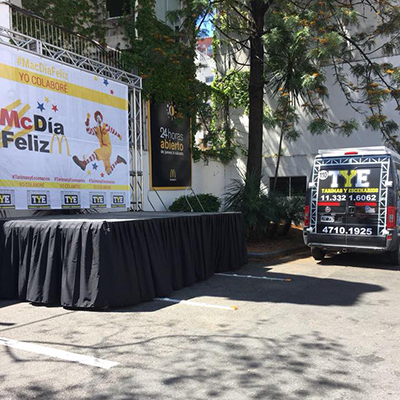 Escenario 4x3 metros x 1 metro de altura con faldon perimetral para Mc Donalds.