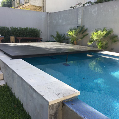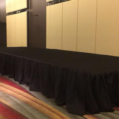 Tarima alfombrada con faldon perimetral  para el hotel Hilton.