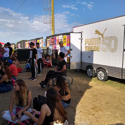 Servicio de alquiler de baños quimicos VIP. Premium ploteados con logo institucional para Puma.